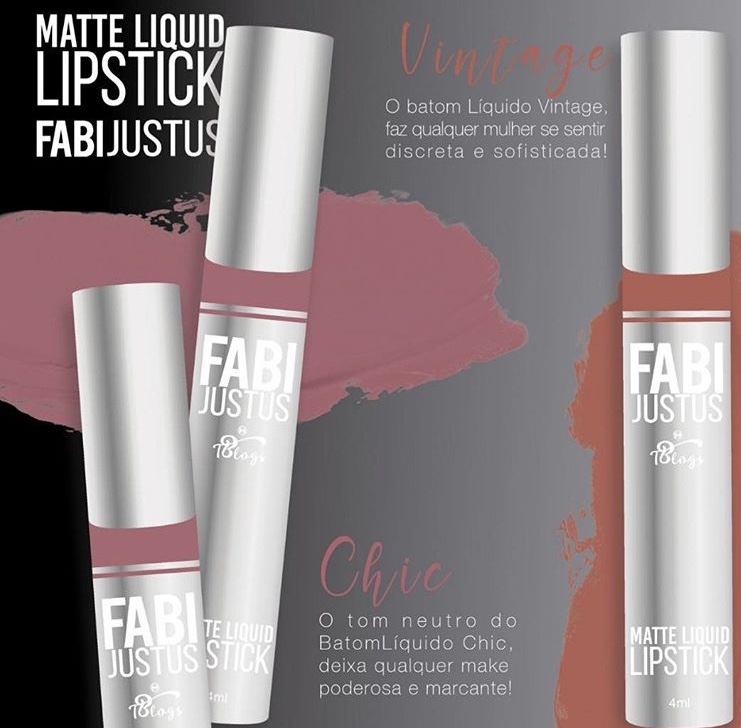 A digital influencer Fabiana Justus, acaba de divulgar o seu mais novo lançamento: uma coleção de batons em parceria com a T. Blogs. São 4 cores de batons líquidos com acabamento matte. As cores sáo bem clássicas e versáteis, indo do vermelho ao nude. Sabe aquele batom coringa? Pois é, vale a pena investir.